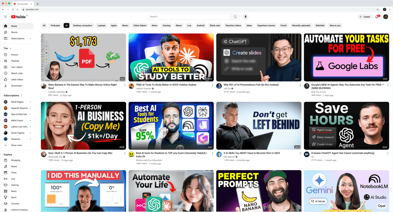 Gemini AI — Recommended for deep, layered research across multiple sources like articles, blogs, PDFs, and YouTube videos.